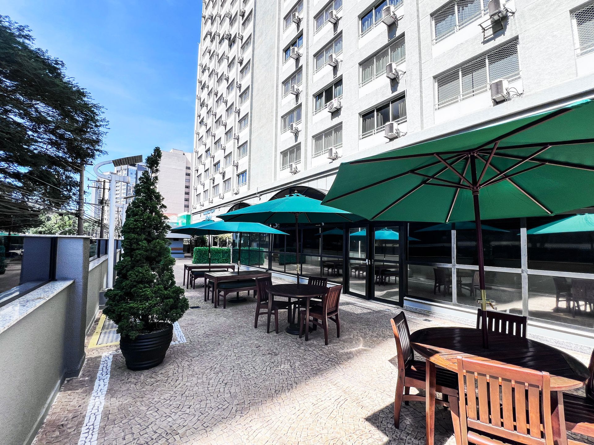 O hotel conta também com estacionamento próprio (vagas rotativas \ taxa de R$25,00 por diária por veículo, com pagamento no check-in).