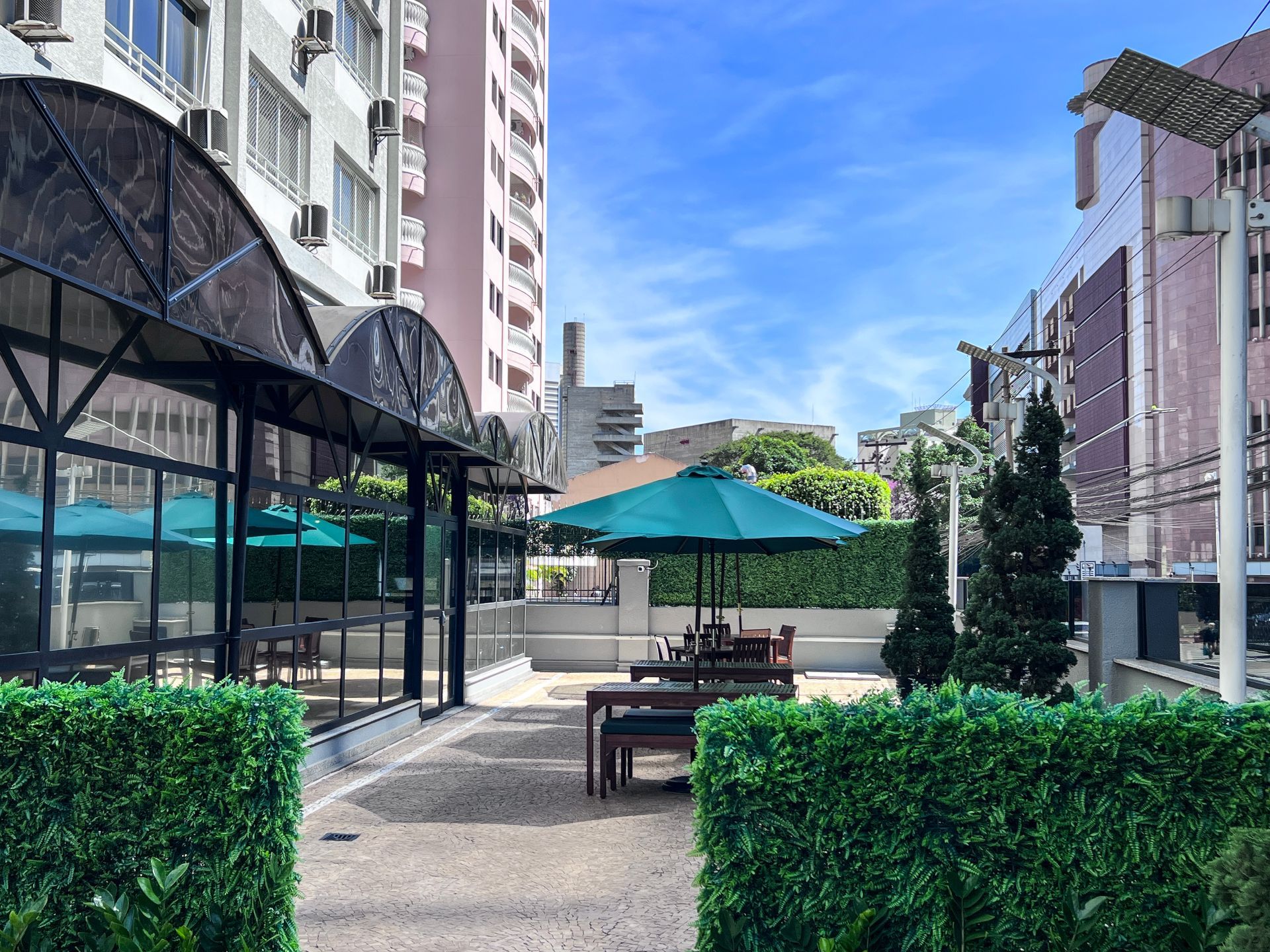 Além de um ambiente aconchegante fazendo o hóspede sentir-se em casa, oferecemos na área de lazer: fitness center com equipamentos profissionais, piscina com vista panorâmica e pista de cooper.